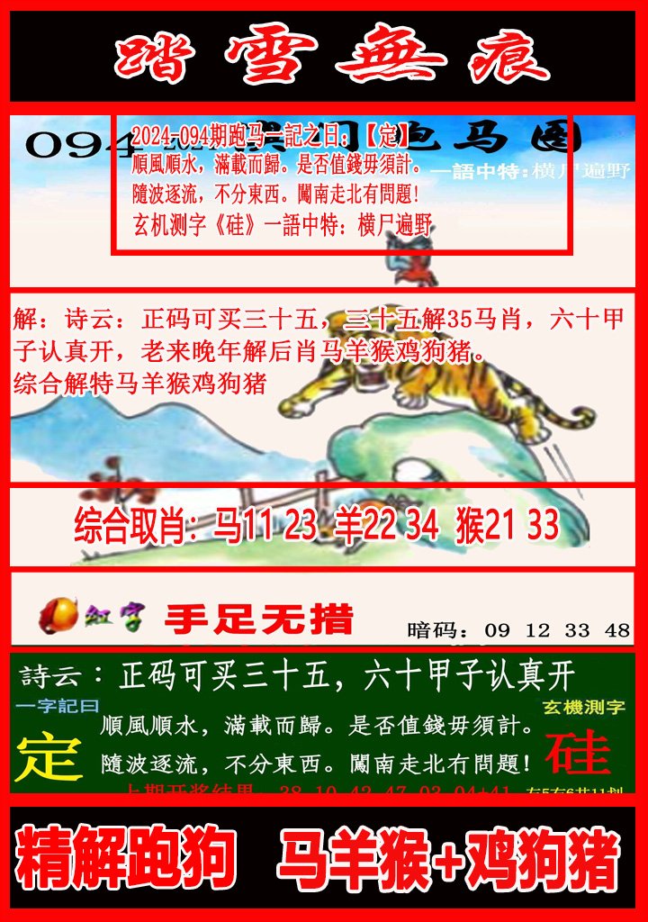 094期平猴→猴马(2连)→猴马蛇(3连) |