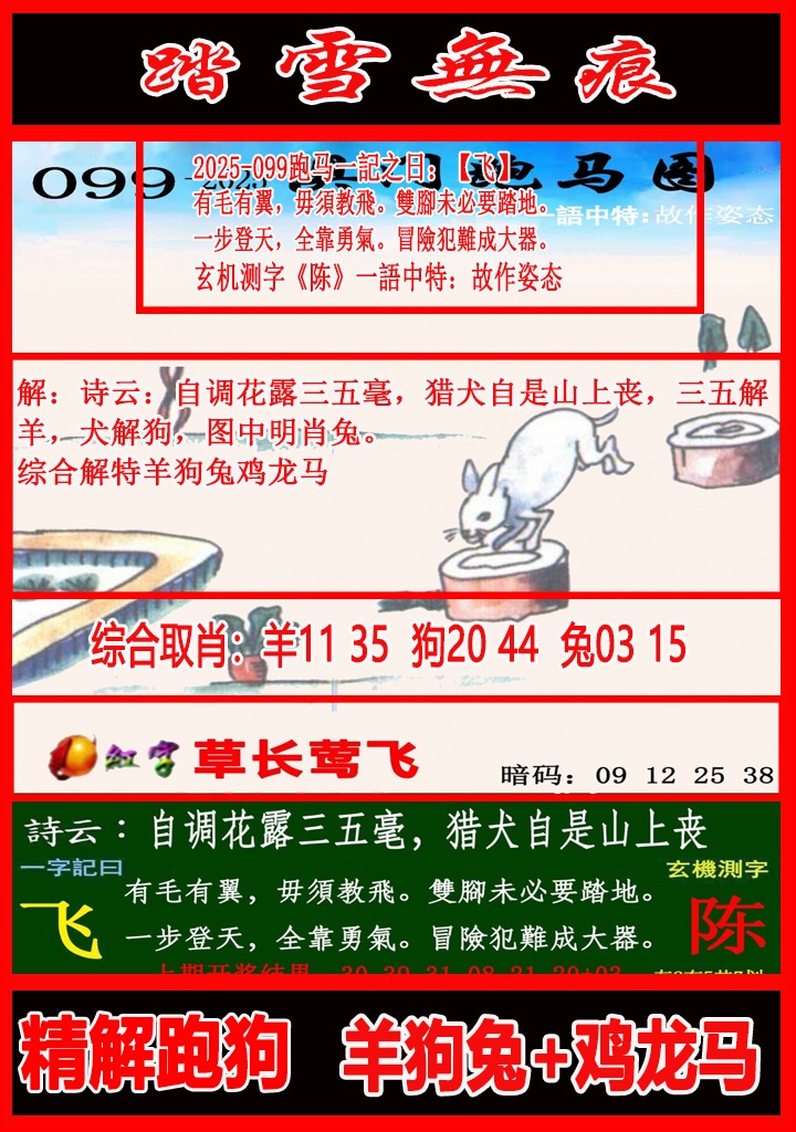 099期:⑨肖 虎蛇龙猴鸡牛鼠猪 开12羊准