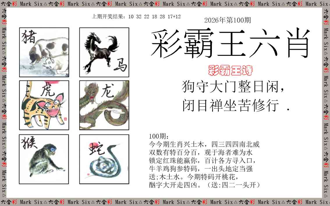 100期:⑨肖 虎牛马兔猴鸡鼠蛇狗 开??准